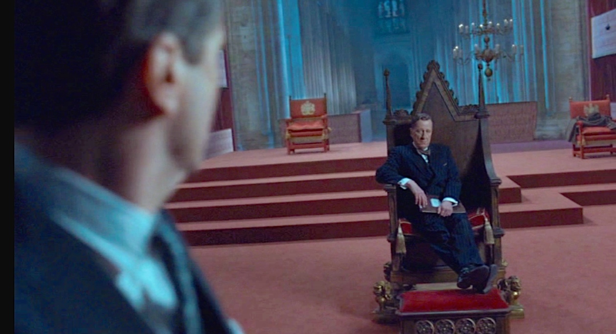 Op het moment dat de repeterende prins zich in Westminster Abbey in zelfmedelijden beklaagt over zijn miserabele lot als George de Stotteraar en de relatie tussen de heren een dieptepunt bereikt, gooit Lionel het noodgedwongen over een andere boeg. Hij neemt uitdagend plaats op de troon die alleen voor koningen is bestemd. Als de prins Lionel daar ziet zitten, wordt hij furieus. Hij wil dat Lionel direct opstaat en schreeuwt: ‘Get out. You can’t sit there!’ Maar Lionel zet alles op het spel, blijft stug zitten, trotseert de woede van de prins en voert dan zijn meesterlijke en bevrijdende interventie uit. Zie hier het fragment (2.49 min):