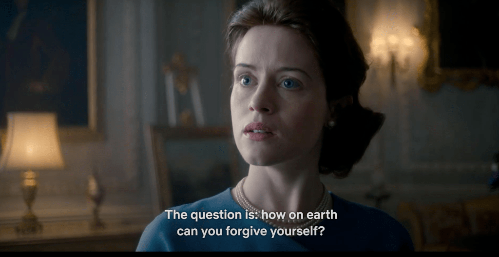 Tegenwoordig zijn we nogal makkelijk geworden met het vergeven van dingen. Ook psychologisch schijnt het een aanbeveling te zijn. Als je niet vergeeft en vergeet, luidt het, dan blijf je hangen in het verleden en daar schiet niemand iets mee op. Zet je erover heen! Iedereen maakt fouten. We zijn niet volmaakt. Ik denk, dat dit soort oppervlakkige redeneringen volledig voorbij gaat aan diepere lagen van het leven waarin al onze daden, en de gevolgen daarvan, als op een soort super blockchain voor eeuwig zijn ingekerfd. Elizabeth weet dat intuitief en vanuit die dimensie van het leven komt zij tot haar oordeel en besluit. Echter ook Edward weet dit diep van binnen al probeert hij er voor te vluchten. En we weten het eigenlijk allemaal zelf ook wel. Geloof in vergeving komt voort uit de mythe waarin het mogelijk is op een makkelijke manier bij een ander of jezelf schuld en verantwoordelijkheid weg te poetsen. Maar zo werkt het niet in het leven; de wereld vergeet niets. Vergeving is niet aan jou of mij en ook niet aan een koningin. Het is meer iets voor de Goden. Méér dan compassie hebben we elkaar op deze aarde niet te bieden en dat maakt ons menselijk. En compassie heeft Edward van Elizabeth, gezien zijn ruime toelages, al in voldoende mate gekregen.