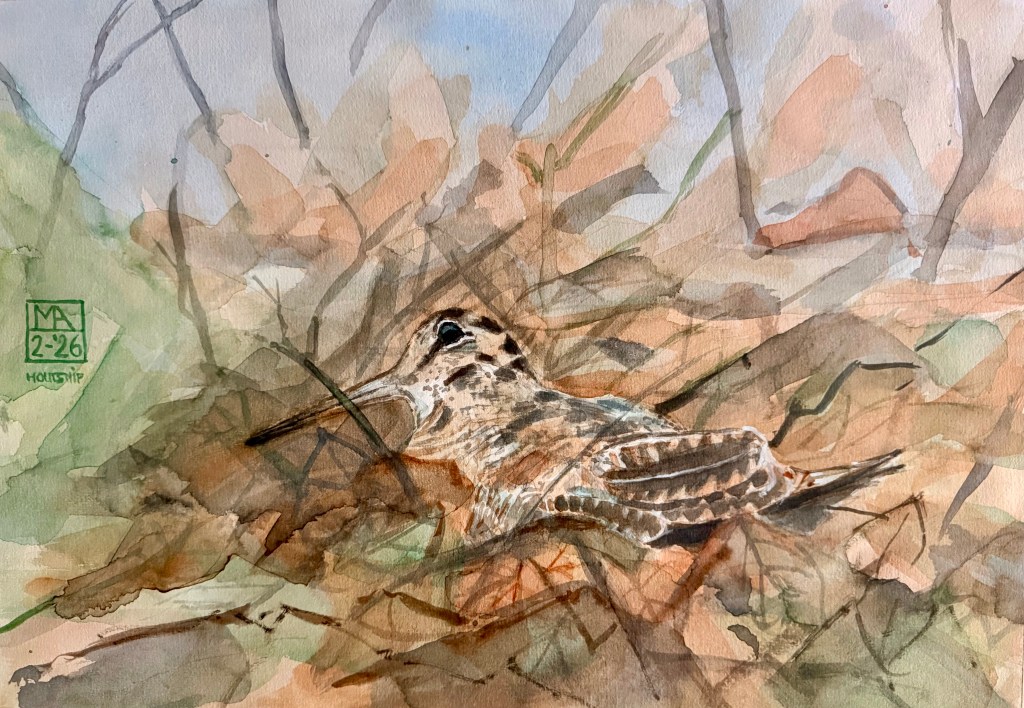 Eurasian Woodcock (Houtsnip), watercolor, 40×30 cm, 12-2-2026 Kees, watercolor, 30×20 cm, 14-1-2026 Weimar , watercolor, 110×70 cm, dec 2025Aankomst in Rome (Via Francigena), watercolor, 30×20 cm, 13-12-2025“Braam”, the pigeon of Hebe, watercolor, 30×20 cm, oct. 2025Sketchbook, ‘Weimar’, watercolor, 19x12cm, 11-’25Sketchbook: ‘Rain in San Diego’, watercolor, 19×12 cm, 11-2025