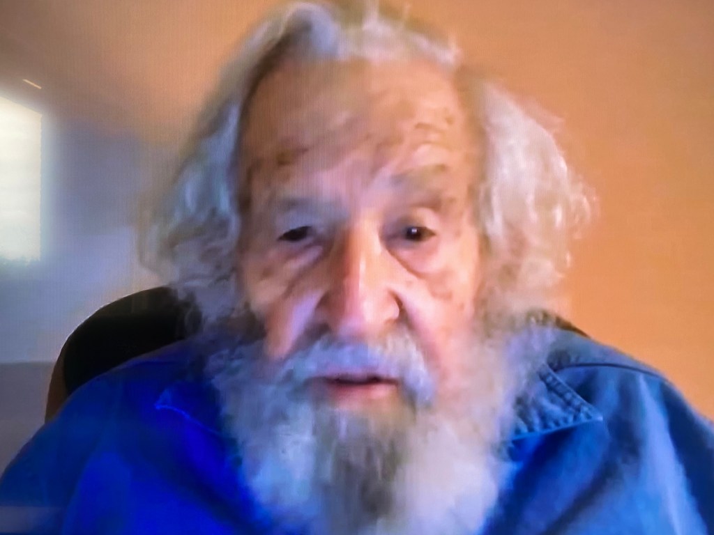 Vierennegentig is hij nu, Noam Chomsky, de bekende wetenschapper, vrijdenker, activist en publicist die hier geen verdere introductie behoeft, anders dan dat het om een mens gaat die tot vandaag de dag zijn leven onvermoeibaar heeft gewijd aan het ontdekken en zichtbaar maken van de diepere lagen van de taal, de politieke geschiedenis en het leven in het algemeen. Dit levenslange streven alleen al, maakt deze polymath, nog los van zijn – soms controversiële – inzichten, de moeite waard om naar te luisteren. Vooral om te horen hoe hij met zijn achtergrond en levenservaring naar de huidige nogal chaotische wereld kijkt. Recent, in juni 2022, gaf hij online de aftrap voor een conferentie over energie transitie en daarin deed hij, inmiddels met het uiterlijk en de statuur van een eigentijdse Leonardo Da Vinci, enkele uitspraken die op zijn minst verontrustend, maar ook richtinggevend zijn.